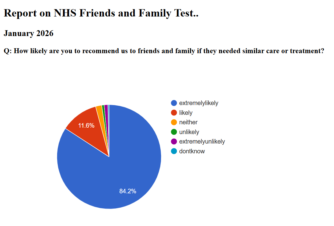 We want you to have the best possible experience of care. The Friends and Family Test is a way of gathering your feedback so we can continually review our service.